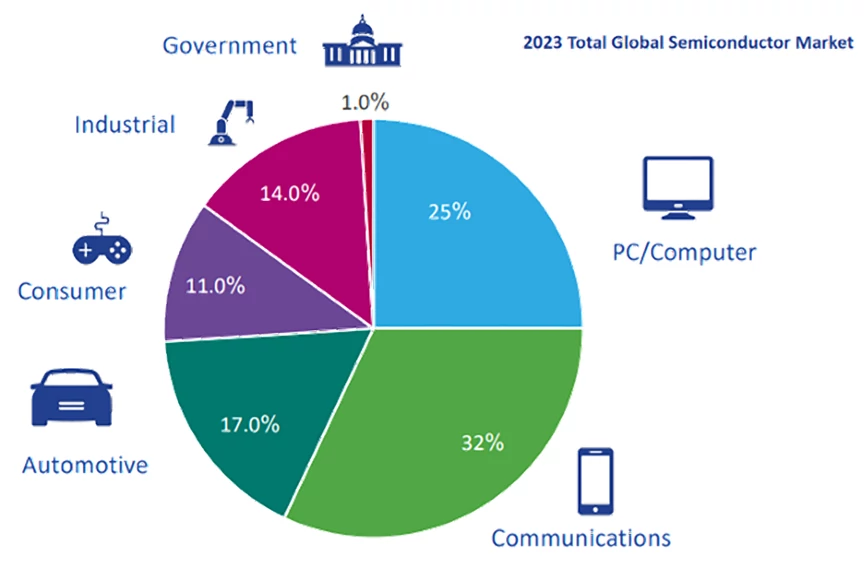 End-use market share for semiconductors (Source: WSTS & SIA May 2024)
