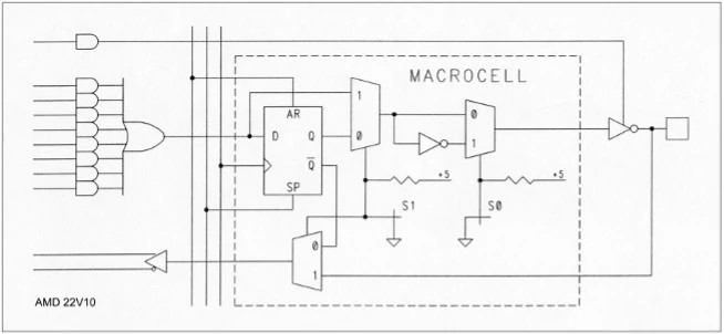AMD introduced the 24-pin 22V10 in 1983 with additional features. It was versatile enough to replicate the functionality of many different original PALs, hence the ‘V’. AMD acquired MMI in 1987, only to spin off their programmable business as Vantis, in 1996, which was eventually acquired by Lattice in 1999.